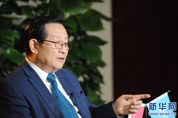 圖為科技部部長萬鋼接受新華網和中國政府網專訪。新華網 郭小天 攝