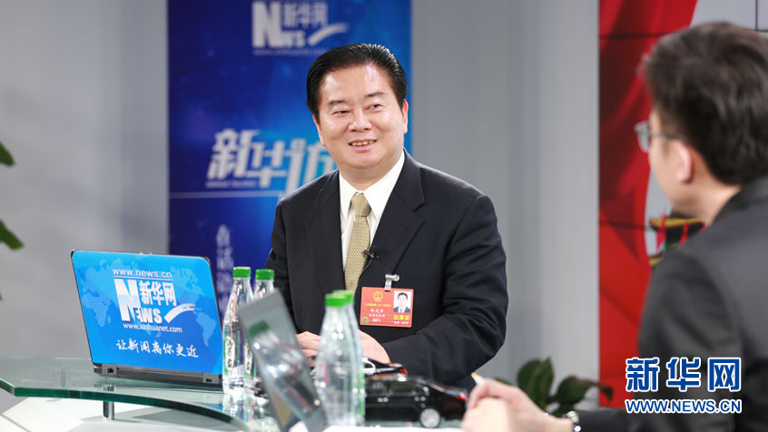 圖為全國人大代表、禹洲集團董事局主席林龍安做客新華網2018全國兩會特別訪談。新華網 楊锘攝