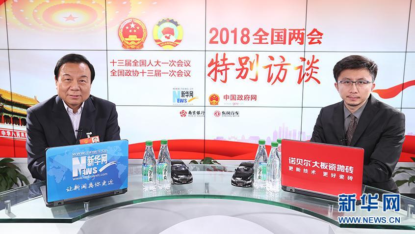 圖為全國人大代表,中華思源工程扶貧基金會副理事長兼秘書長、林達集團董事局主席李曉林(左)做客新華網2018全國兩會特別訪談。 新華網 郭小天攝