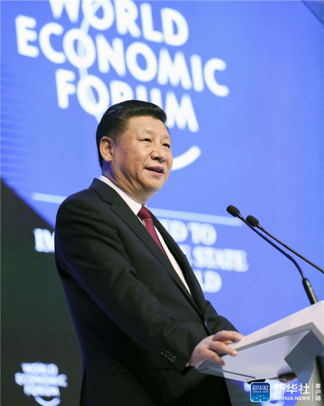 2017年1月17日,習近平在瑞士達沃斯國際會議中心出席世界經濟論壇2017年年會開幕式,并發表題為《共擔時代責任 共促全球發展》的主旨演講。新華社記者 蘭紅光 攝