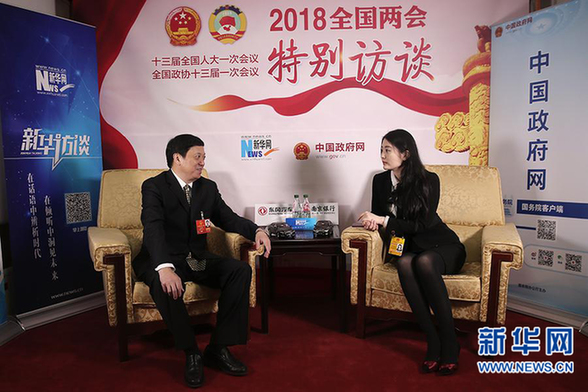 圖為全國人大代表、福州市市長尤猛軍做客新華網2018全國兩會特別訪談 新華網 王翰林?攝