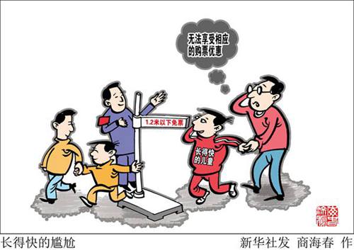 無論是聯(lián)合國兒童權(quán)利公約,還是我國相關(guān)法律法規(guī),界定兒童的唯一標準就是年齡。他們與成年人最大的區(qū)別,是履行社會責任能力的不足,與高矮胖瘦無關(guān)。兒童票優(yōu)惠政策是國家和社會對這一特殊群體的關(guān)懷,在個體生理狀況存在差異的情況下,年齡是最科學也最公平的標準。若依某項生理指標制定優(yōu)惠標準,不但有失公允,而且有歧視之嫌。