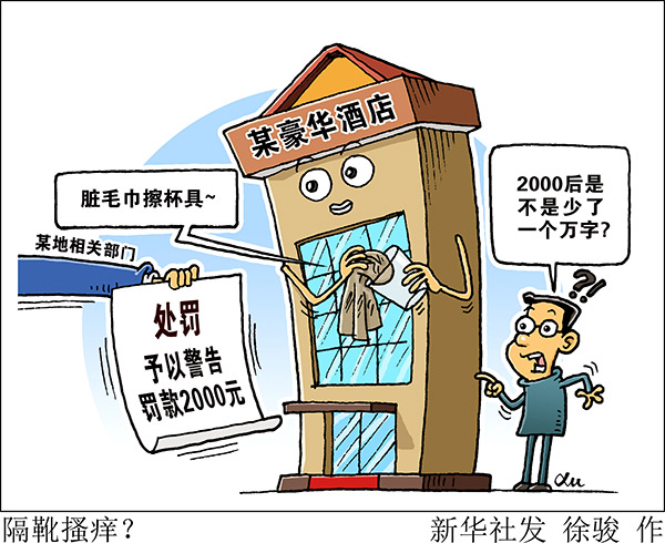 2018年11月,國內十幾家高端酒店連續曝出衛生亂象。近日上海相關部門對涉事酒店分別處以警告、罰款2000元的處罰,引發網友熱議:被罰金額甚至抵不上有的酒店單間一晚房價。業界呼吁,“亮劍”酒店亂象還需“劍更鋒利”。