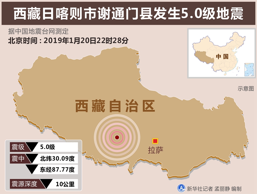 圖表:西藏日喀則市謝通門縣發生5.0級地震 新華社記者 孟麗靜 編制