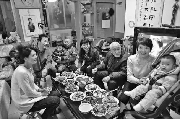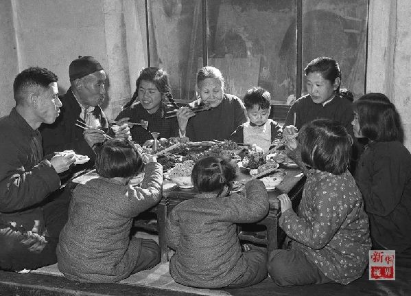1953年,天津市漢沽區蘆臺王德鑄(左一)一家吃團圓飯。