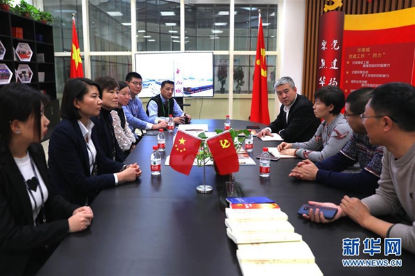 2月15日,在哈爾濱傳化智能公路港物流有限公司,哈爾濱市“首席服務官”(左一為張智偉、左二為何云霞、右二為姜山)與該公司相關負責人一起探討新一年企業發展規劃。 新華社發(馬超 攝)