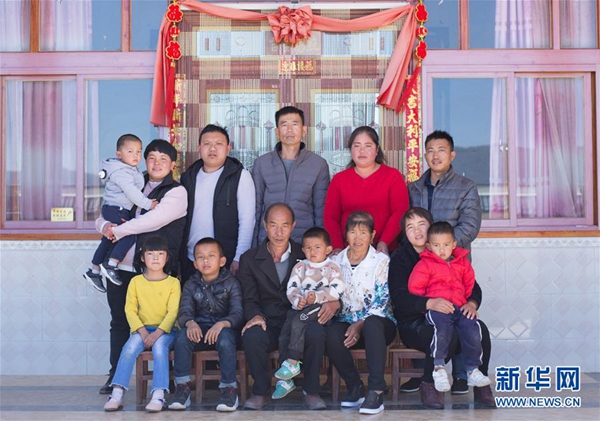 云南省施甸縣興華村村民楊德茂(前排左三)一家的“全家福”(2月7日攝)。新華社發(fā)(楊董清 攝)