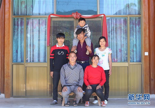 云南省施甸縣由旺鎮(zhèn)楊家社區(qū)村民蔣朋玉(前排左)一家的“全家福”(2月8日攝)。新華社發(fā)(楊董清 攝)