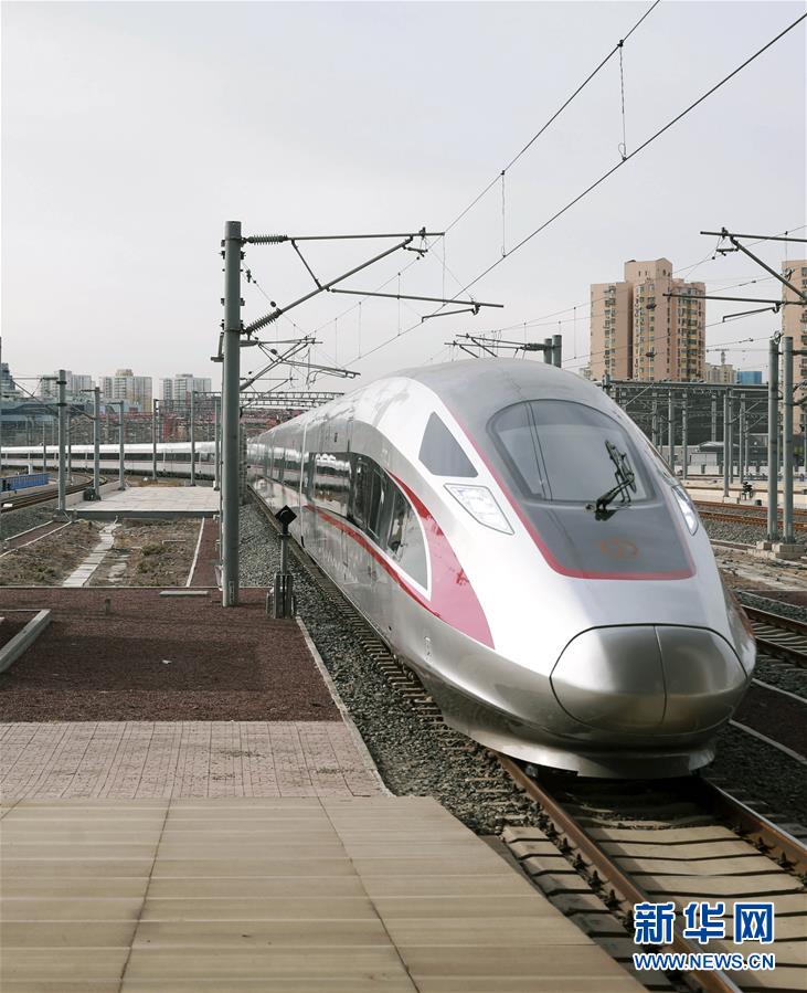 1月5日,超長版時速350公里“復興號”G9次動車組駛入北京南站。新華社發(陳曉根 攝)