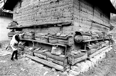 道路的盡頭是一戶被“圓木棒棒”包圍的人家。這家主人姓謝,祖祖輩輩生活在這里,幾乎沒有離開過身后的大山。滿山的核桃樹和環繞自家房屋的蜂巢,是老謝一家的主要收入來源。
