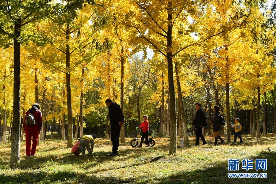 游客在北京通州大運河森林公園游玩(2018年10月27日攝)。2016年,通州被賦予新的歷史定位——北京城市副中心,迎來歷史性發展機遇。新華社記者 羅曉光 攝