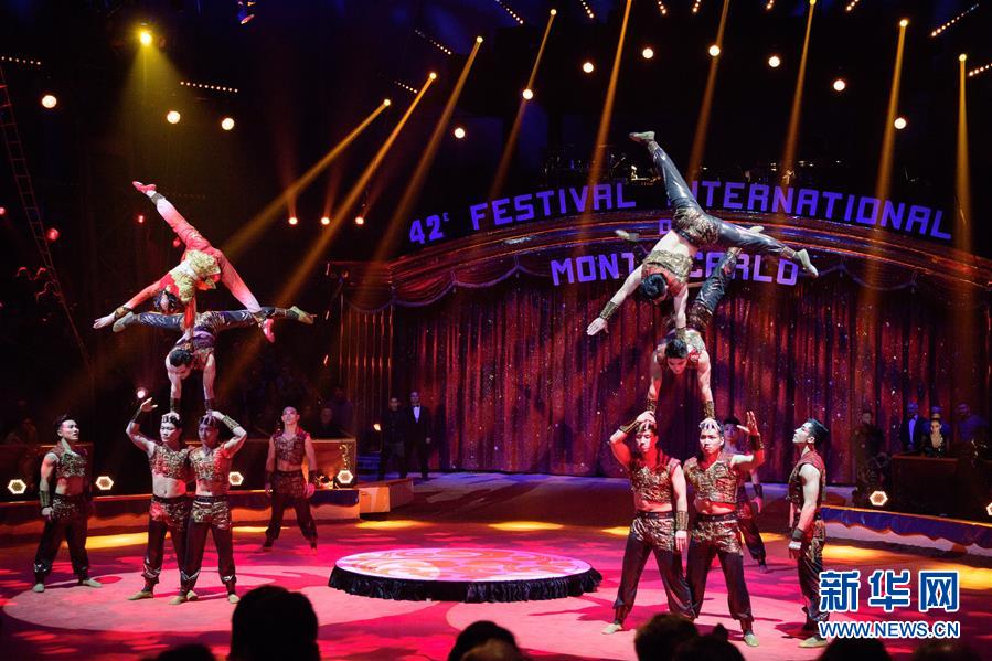 這是2018年1月20日,中國上海雜技團在摩納哥蒙特卡洛馬戲節上表演。 新華社記者 陳益宸 攝
