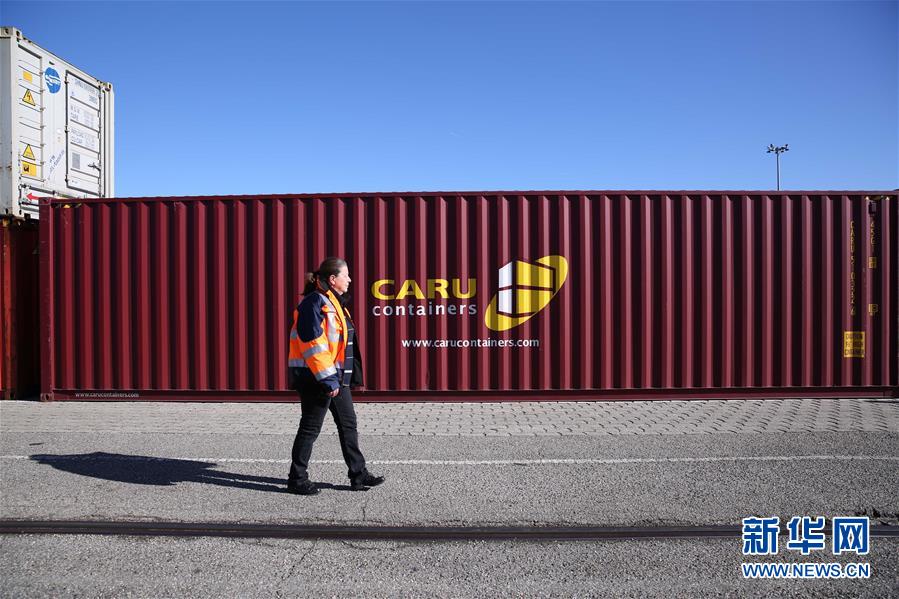 這是2019年3月5日,裝載有中國商品的集裝箱從中國武漢發出后,經由中歐班列運輸抵達法國里昂。 新華社記者 唐霽 攝