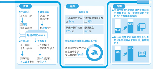 然而,要充分發揮教育信息化的優勢,還需實現信息化手段從“用起來”到“用得好”轉變。這就需要依靠培訓,使教育管理部門和一線師生的信息化素養同步提升。 湖南多地實行四級培訓制度:通過“國培計劃”等,培訓中小學校長及教育主管部門人員;通過湖南省中小學教師信息技術應用能力提升工程,培訓信息技術骨干教師和專任骨干教師;通過組織電化教育館及高校等單位的專家學者赴基層,培訓教育信息化基礎教師;培育出來的“種子教師”,為所在學校的科任教師普及教育信息化知識。