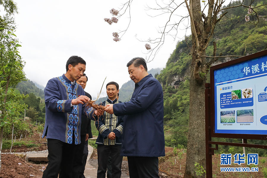 走訪一家脫貧戶,他沿著鄉(xiāng)間小路步行察看自然環(huán)境、村容村貌,了解該村通過種植中藥材黃精等特色經(jīng)濟(jì)作物帶動村民脫貧的情況。