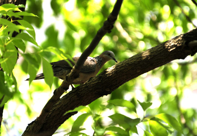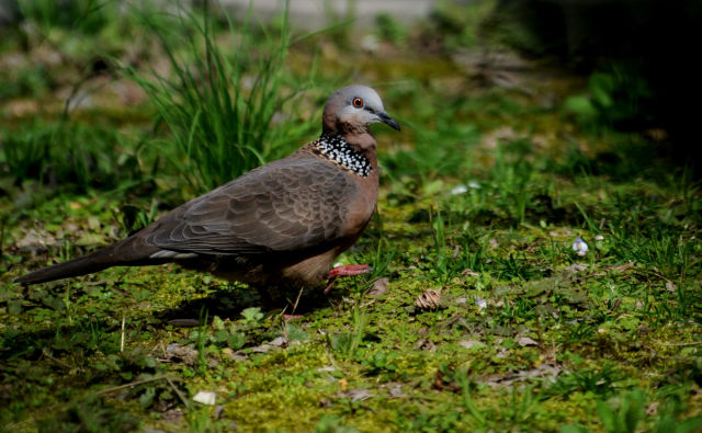 記者居住的小區里鳥也很多,陽臺下面一棵廣玉蘭樹上,一對珠頸斑鳩已經安家了很多年。經??匆姴弊由虾孟翊髦蝗φ渲轫楁湹闹轭i斑鳩,結伴到小區草地上覓食,熟悉得好像小區里的老鄰居。