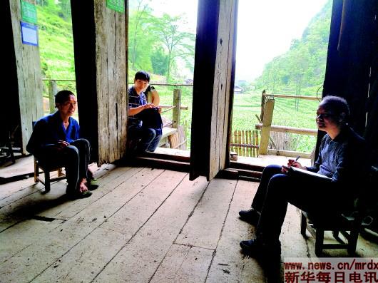 黃吉安(右一)生前在崇文村農(nóng)戶家走訪。(受訪者供圖)