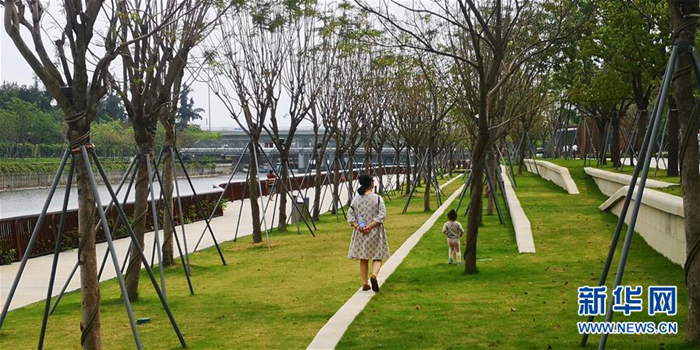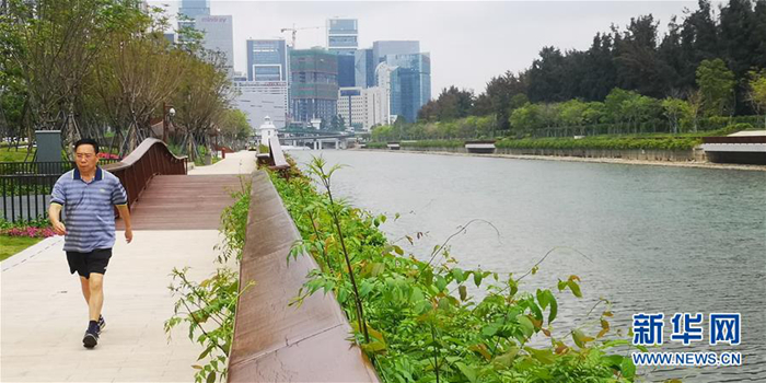市民在深圳市南山區大沙河生態長廊散步(4月11日攝)。新華社記者 白瑜 攝