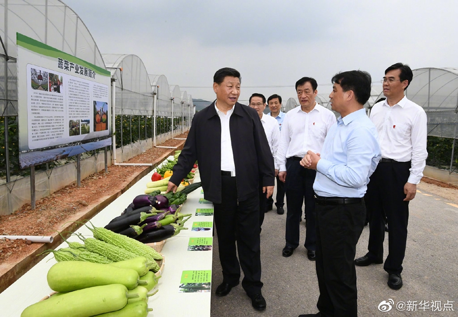 20日下午,習近平總書記來到江西省于都縣梓山富硒蔬菜產業園考察調研。產業園以“龍頭企業+合作社+農戶和貧困戶”發展模式,帶動了當地村民脫貧致富。看到總書記來了,正在大棚里勞作的鄉親們激動地說:“感謝黨的好政策,讓我們過上了幸福生活!”習近平對鄉親們說:“共產黨就是為人民群眾謀幸福的,黨中央想的就是千方百計讓老百姓過上好日子。芝麻開花節節高,今后日子會更好!”(文字:張曉松 攝影:謝環馳、鞠鵬)