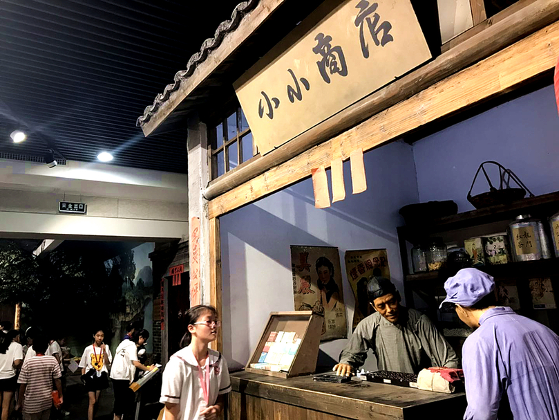6月18日,一名學(xué)生在長(zhǎng)汀縣博物館內(nèi)參觀“小小商店”展區(qū)。