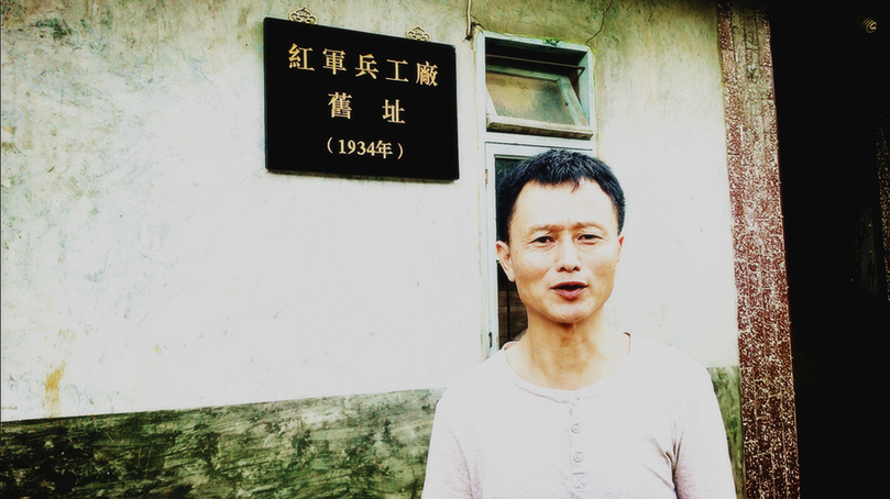 6月17日,長(zhǎng)汀縣樓子壩村主任劉聲紅介紹村內(nèi)紅軍兵工廠舊址的歷史情況。