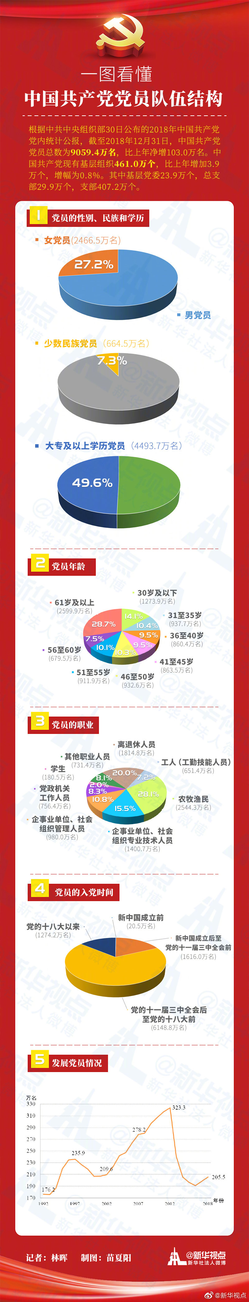 ???中國共產(chǎn)黨隊伍穩(wěn)步壯大:黨員9059.4萬名 基層黨組織461.0萬