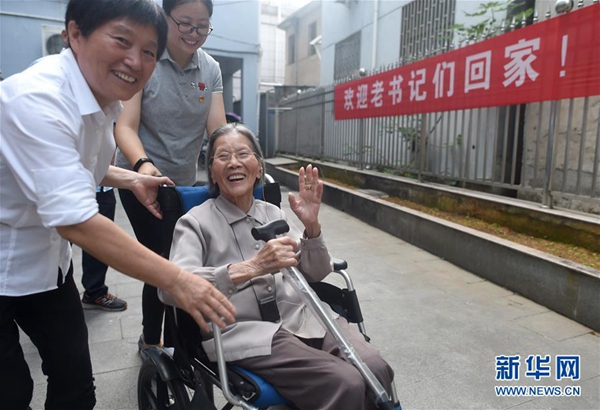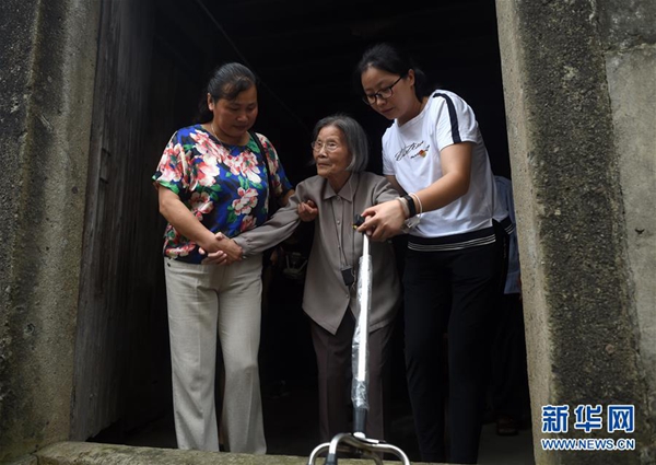 6月30日,呂銀芬(中)在家人陪同下回到七一村。新華社記者 韓傳號 攝