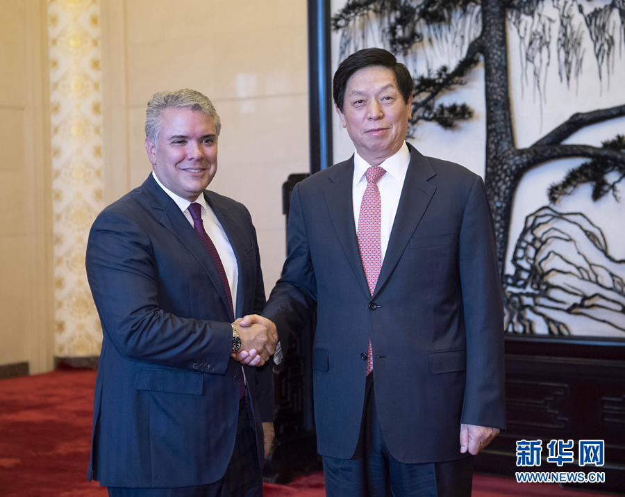 7月31日,全國人大常委會委員長栗戰(zhàn)書在北京人民大會堂會見哥倫比亞總統(tǒng)杜克。 新華社記者 李濤 攝