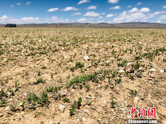 曲麻萊沙化土地上種植的10萬畝中藥苗(魏晞/攝)
