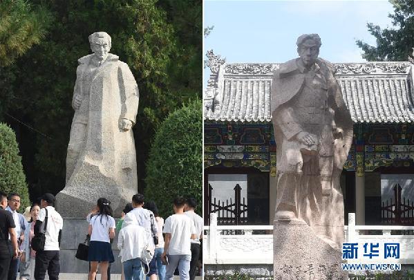 拼版照片左圖為劉志丹烈士陵園內的劉志丹雕像(8月8日攝);右圖為子長烈士紀念館內的謝子長雕像(8月9日攝)。新華社記者 羅曉光 攝