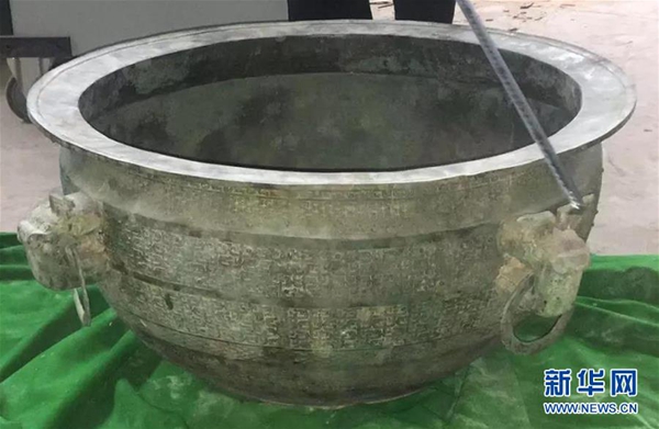 圖為被截獲文物“鑒盆”(8月8日攝) 。新華社發 (蘭州市公安局新聞辦 供圖)