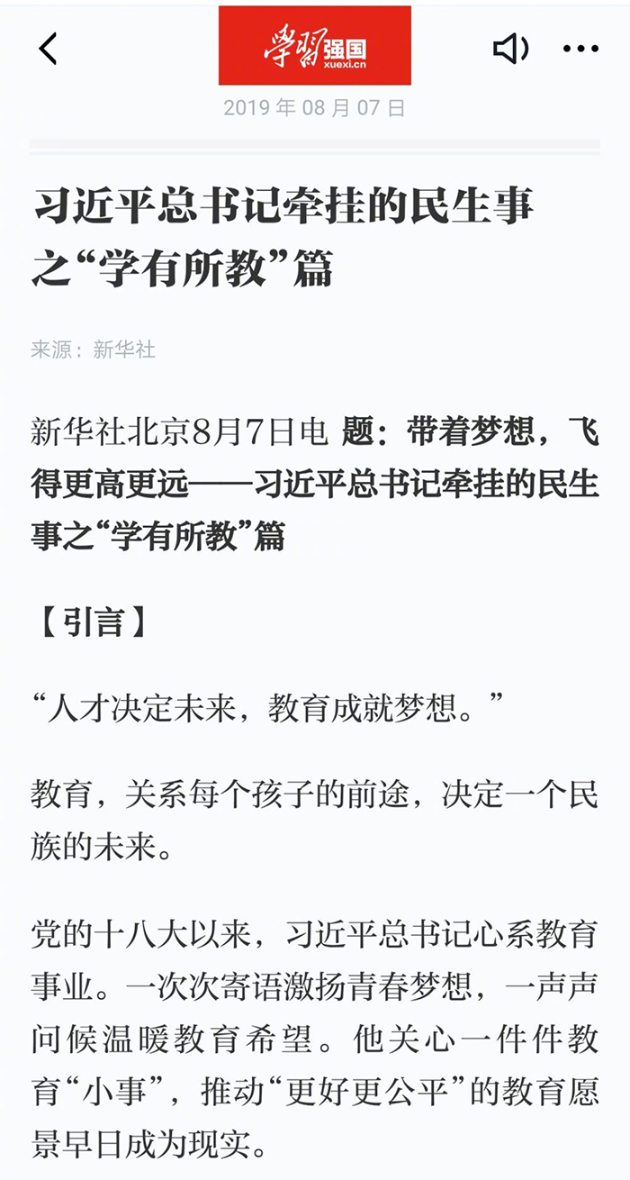最近,新華社以“習(xí)近平的民生關(guān)切事”為主題,分別從“幼有所育、學(xué)有所教、勞有所得、病有所醫(yī)、老有所養(yǎng)、住有所居、弱有所扶”7個(gè)方面,以22個(gè)故事為線索,寫了7篇文章,集中反映黨的十八大以來,在習(xí)近平總書記的親切關(guān)懷下,我國民生事業(yè)得到長(zhǎng)足發(fā)展,取得顯著成就,充分展現(xiàn)人民群眾的獲得感、幸福感、安全感。