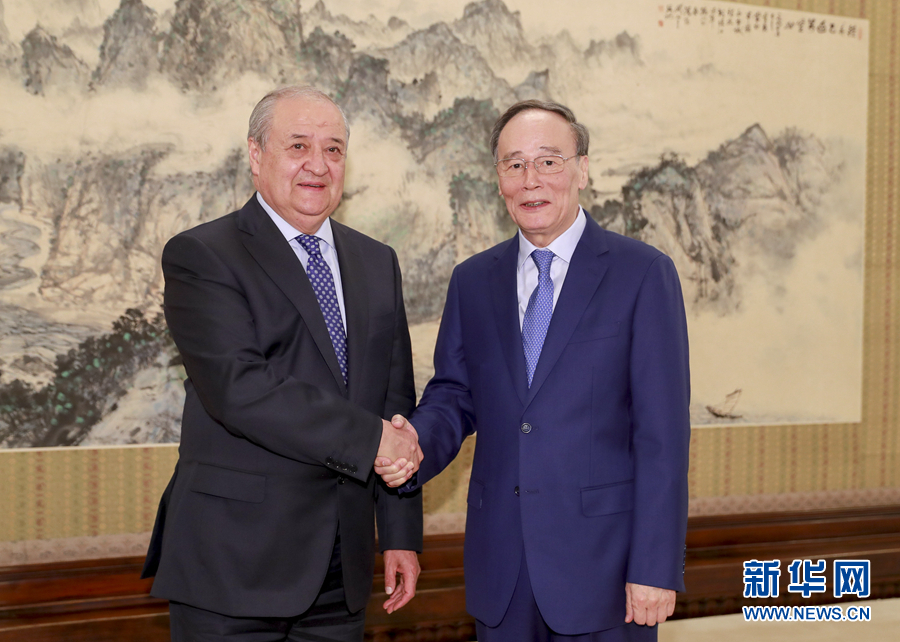 王岐山會(huì)見烏茲別克斯坦外長卡米洛夫