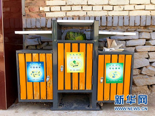 圖為小廟子村村民住房前的分類垃圾箱。新華網汪亞/攝