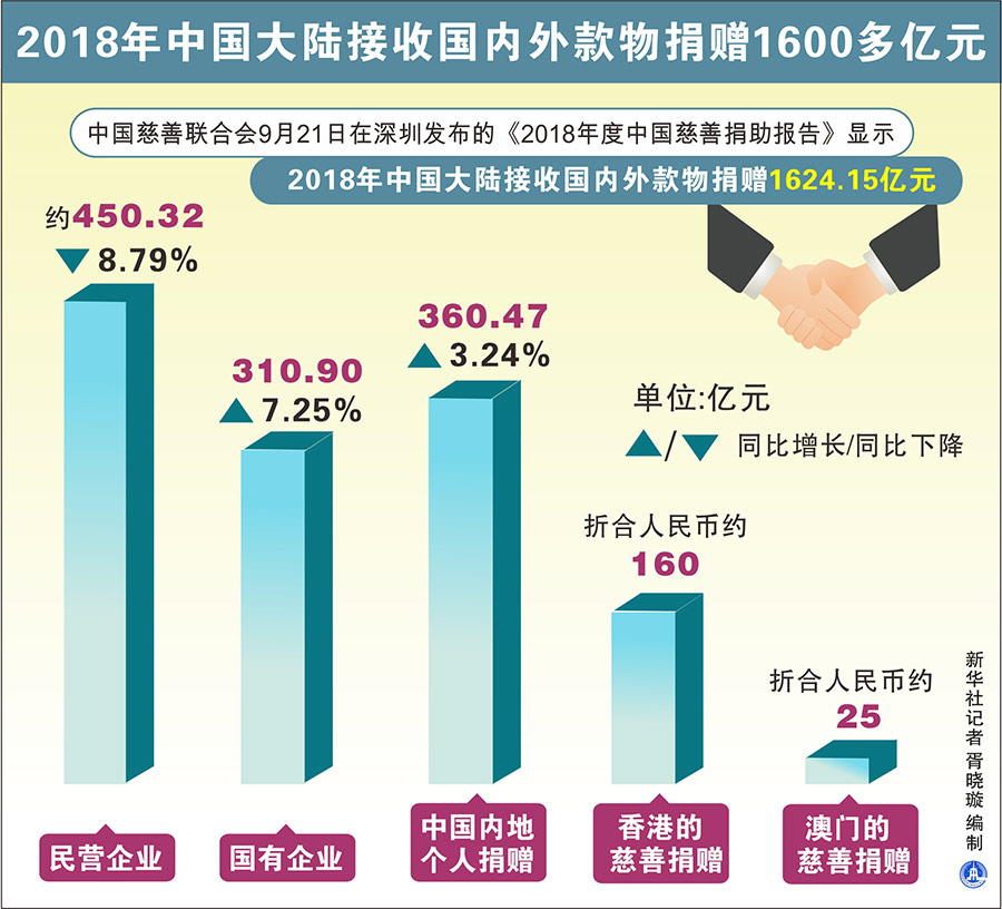 2018年中國大陸接收國內外款物捐贈1600多億元-新華網