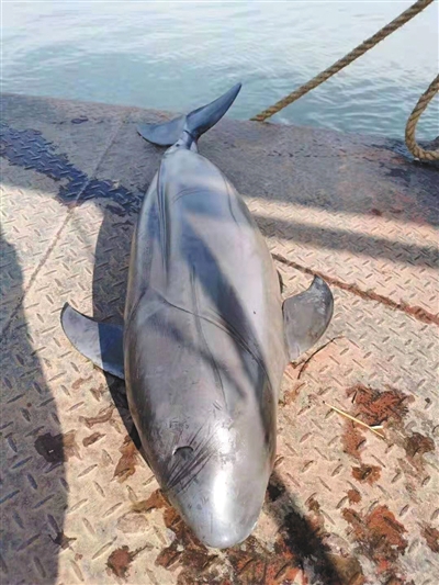 新京報訊 近日,長江流域湘鄂段發現兩只死亡江豚。一頭位于岳陽市洞庭湖大橋,尸體被發現時尾部綁有磚頭,另一頭位于湖北長江新螺段,專家推測死因系誤入漁網窒息而死。