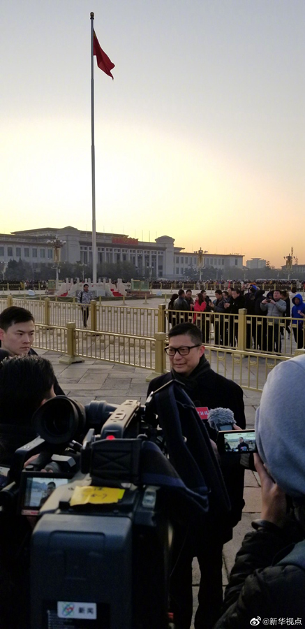 12月7日清晨,香港特區政府警務處處長鄧炳強一行來到天安門廣場觀看升旗儀式。(記者孫少龍) ????