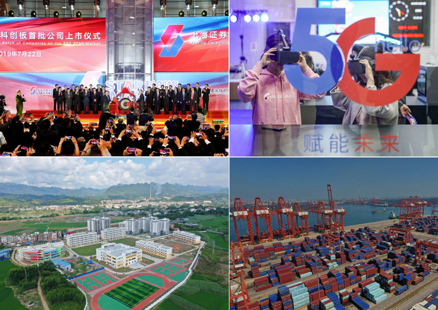 鳳凰展翅,逐夢藍天。國慶節前,北京大興國際機場正式投運。不到5年時間,完成預定建設任務,創造了新的奇跡。我國第一艘國產航空母艦山東艦交付海軍;5G商用牌照正式發放;嫦娥四號探測器實現人類探測器首次月背軟著陸;長征五號運載火箭成功發射實踐二十號衛星;到今年底,鐵路營業里程達到13.9萬公里以上,其中高鐵3.5萬公里,居世界第一……這一年,這些新成果總能讓人欣喜振奮。