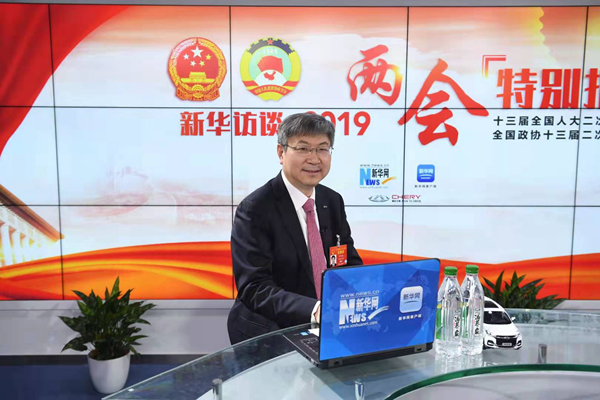 全國人大代表、奇瑞汽車股份有限公司黨委書記、董事長尹同躍,3月6日做客新華網2019全國兩會特別報道。新華網 李相博 攝