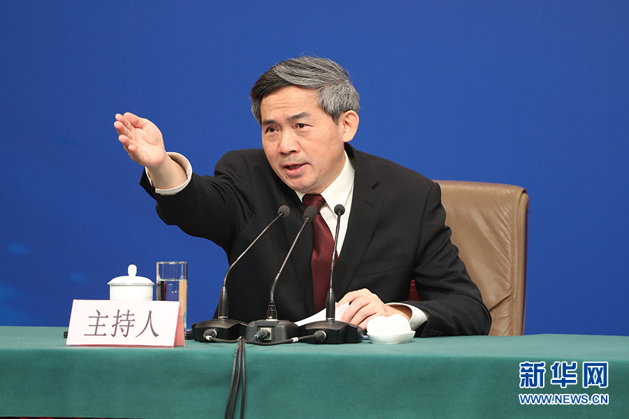 十三屆全國(guó)人大二次會(huì)議新聞中心3月8日10時(shí)在梅地亞中心新聞發(fā)布廳舉行記者會(huì),邀請(qǐng)國(guó)務(wù)委員兼外交部長(zhǎng)王毅就“中國(guó)外交政策和對(duì)外關(guān)系”相關(guān)問題回答中外記者提問。圖為記者會(huì)主持人何紹仁。新華網(wǎng)/中國(guó)政府網(wǎng) 陳杰 攝