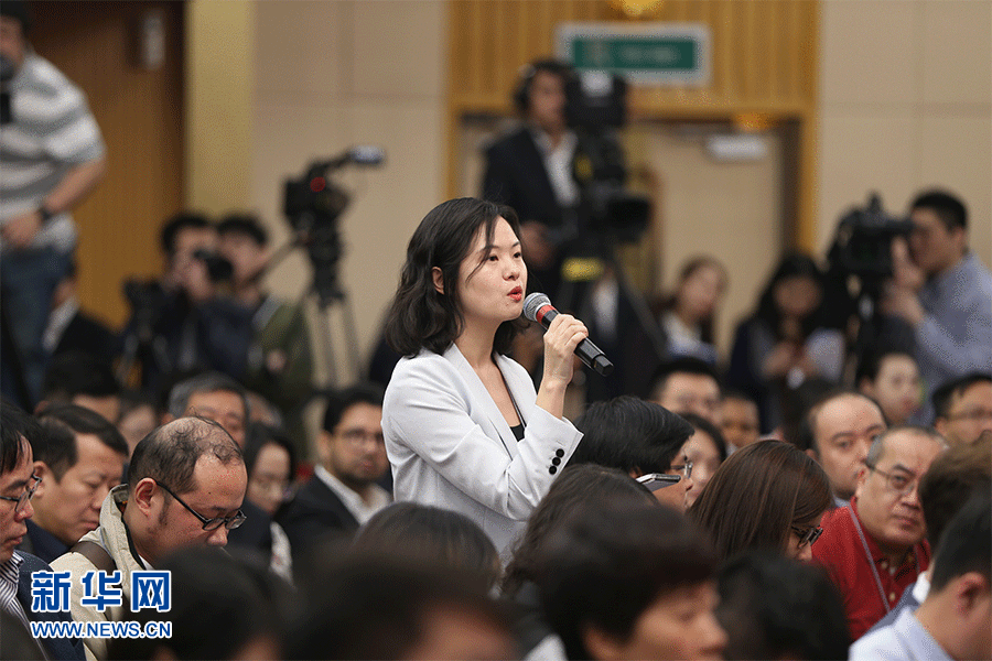 十三屆全國人大二次會議新聞中心3月9日(星期六)10時30分在梅地亞中心新聞發布廳舉行記者會,邀請商務部部長鐘山、副部長兼國際貿易談判副代表王受文、副部長錢克明就“促進形成強大國內市場 推動全方位對外開放”相關問題回答中外記者提問。圖為中央廣播電視總臺央廣記者提問。新華網/中國政府網 劉廈 攝