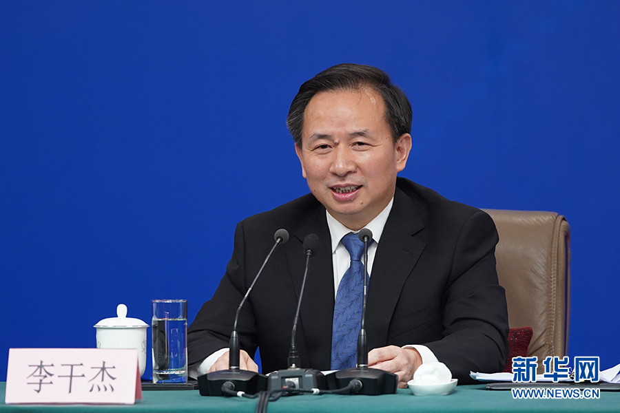 十三屆全國人大二次會議新聞中心于3月11日(星期一)15時在梅地亞中心新聞發布廳舉行記者會,邀請生態環境部部長李干杰就“打好污染防治攻堅戰”相關問題回答中外記者提問。圖為李干杰回答記者提問。新華網/中國政府網 劉廈 攝