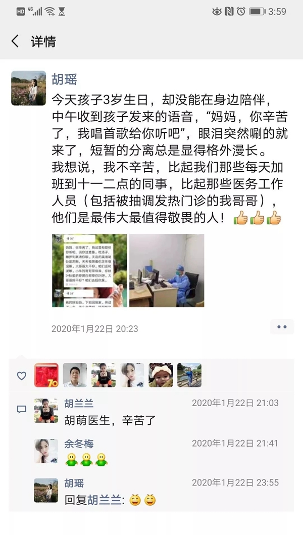 “我爸媽其實(shí)是挺擔(dān)心我們的,他們每天在家也都在關(guān)注肺炎的相關(guān)新聞,知道危險(xiǎn)性,但從來沒有一句阻攔的話。我爸是一名老黨員了,他經(jīng)常對我和妹妹說,能用所學(xué)幫到社會是一件光榮的事情。”胡萌說。