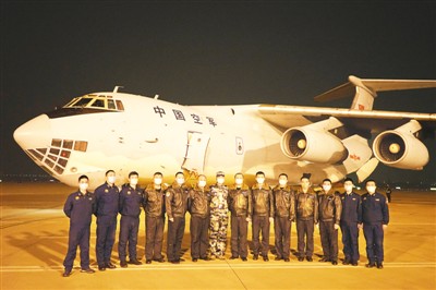 1月24日,空軍航空兵某團(tuán)大型運(yùn)輸機(jī)飛抵陜西咸陽(yáng)機(jī)場(chǎng),機(jī)組人員奉命執(zhí)行空運(yùn)空軍軍醫(yī)大學(xué)醫(yī)療隊(duì)馳援武漢任務(wù)。李世寧攝(新華社發(fā))