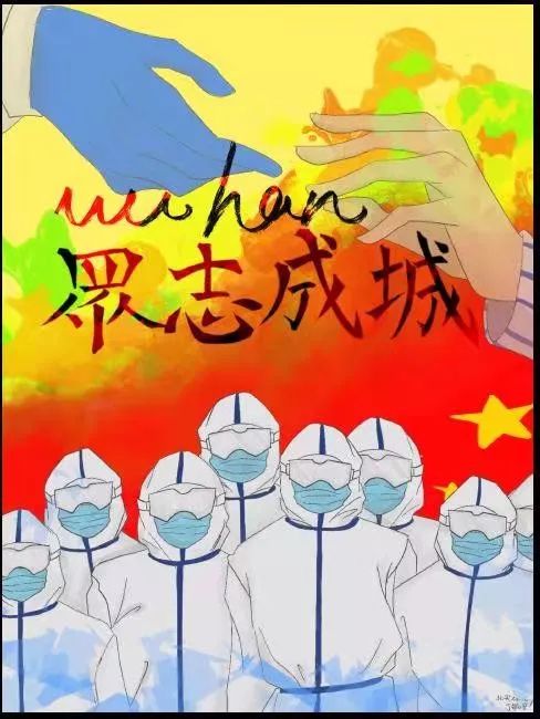 來自家人的牽掛總是最暖心,世紀壇醫院領隊丁新民收到了女兒自己畫的一幅畫,畫的正中央寫著眾志成城: