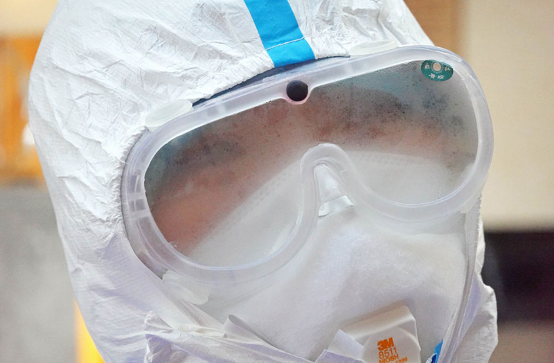 每次出門采訪都如臨大敵:先換好外出的衣裳、戴好醫(yī)用手套、戴好護目鏡,然后再小心翼翼地在臉上加上一個或兩個口罩,在門口換上出門的鞋,最后再背上采訪設(shè)備——每次做完這些的時候,作為胖子的我身上已經(jīng)開始冒汗并且氣喘吁吁。如果要去醫(yī)院采訪,有時候還要再穿上一件防護服。這樣的裝備,出門走一圈其實已經(jīng)很難受了,而我還要隔著不斷產(chǎn)生霧氣的護目鏡拍照,要不斷地移動、尋找最好的拍攝角度和位置,采訪的時候更要記下一個個口罩后面的名字、故事......這樣的采訪狀態(tài)對我而言,從未曾經(jīng)歷過——多年前,我曾在利比亞做過戰(zhàn)地記者,也曾被武裝分子用槍指著腦袋,但這次在武漢,我不知道那些危險的“敵人”究竟藏在何方,也許就在無處不在的空氣里!