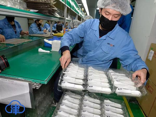 施向健大年初一就開始安排復(fù)工的生產(chǎn)計(jì)劃、物料準(zhǔn)備等工作。正月初四,三分之一員工到崗,開始恢復(fù)生產(chǎn)。“現(xiàn)在有250多名員工參加生產(chǎn),以本地員工為主。目前,我們只生產(chǎn)紅外線額溫計(jì),停止了其他所有商業(yè)需求,全力配合公共衛(wèi)生防疫需求。”施向健告訴記者。