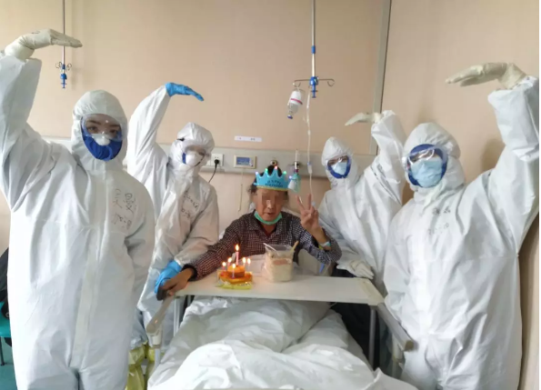 易老先生對我們說:“你們讓我度過了一個別開生面,永生難忘的76歲壽誕,讓我重拾戰勝病毒的信心。雖然你們穿著防護服,戴著面罩,看不清你們的臉,但我相信你們都是最美的白衣天使。”