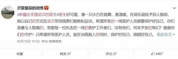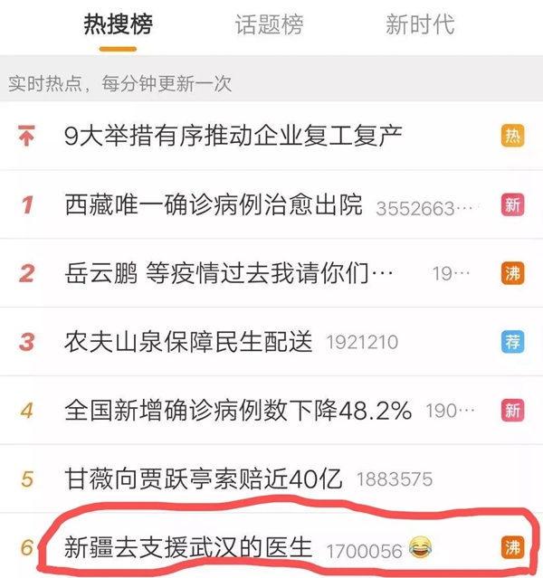 昨天,新疆去支援武漢的醫生話題猝不及防地上了微博熱搜。