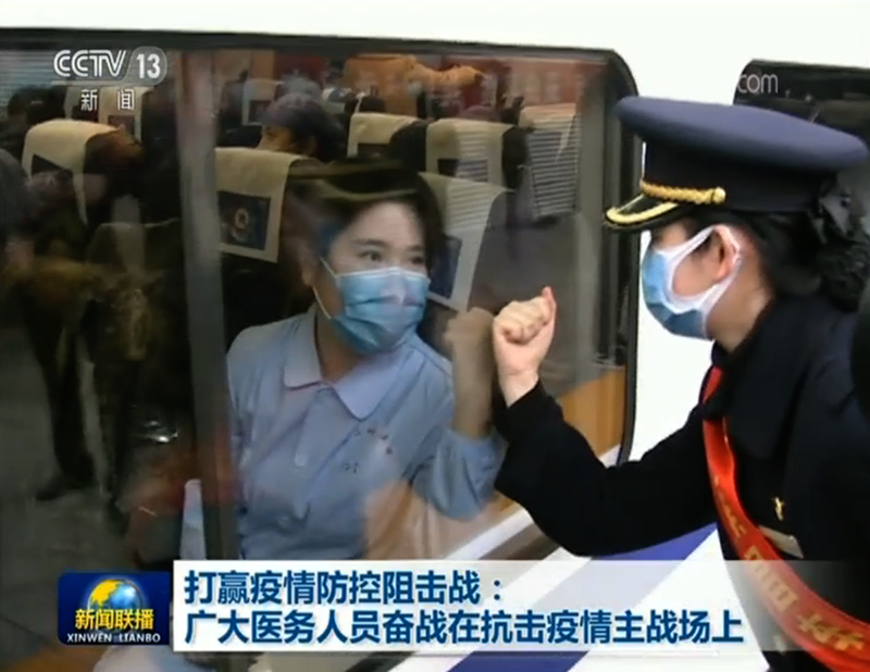 習近平總書記指出,新冠肺炎疫情發生以來,廣大醫務人員沖鋒在前、無私奉獻,全國各族人民眾志成城、團結奮進。經過艱苦努力,疫情形勢出現積極變化,防控工作取得積極成效??倳浀脑捈钪笔♂t護人員和來自全國各地的3萬多名醫療隊隊員并肩戰斗、盡職擔當。